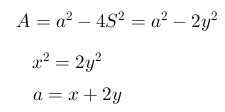 Entonces, llamando A al área del octógono y S a la superficie de uno de los ocho picos iguales. Tendremos las siguientes relaciones: